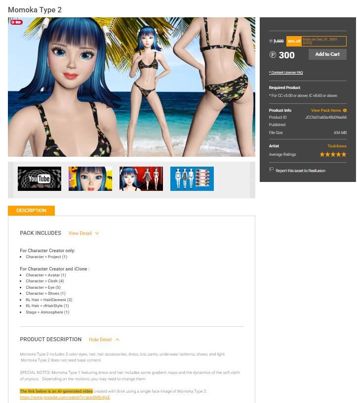 Reallusion MarketplaceでMomoka Type 2をリリースしました。iClone用とCharacter Creator用の両方あります。