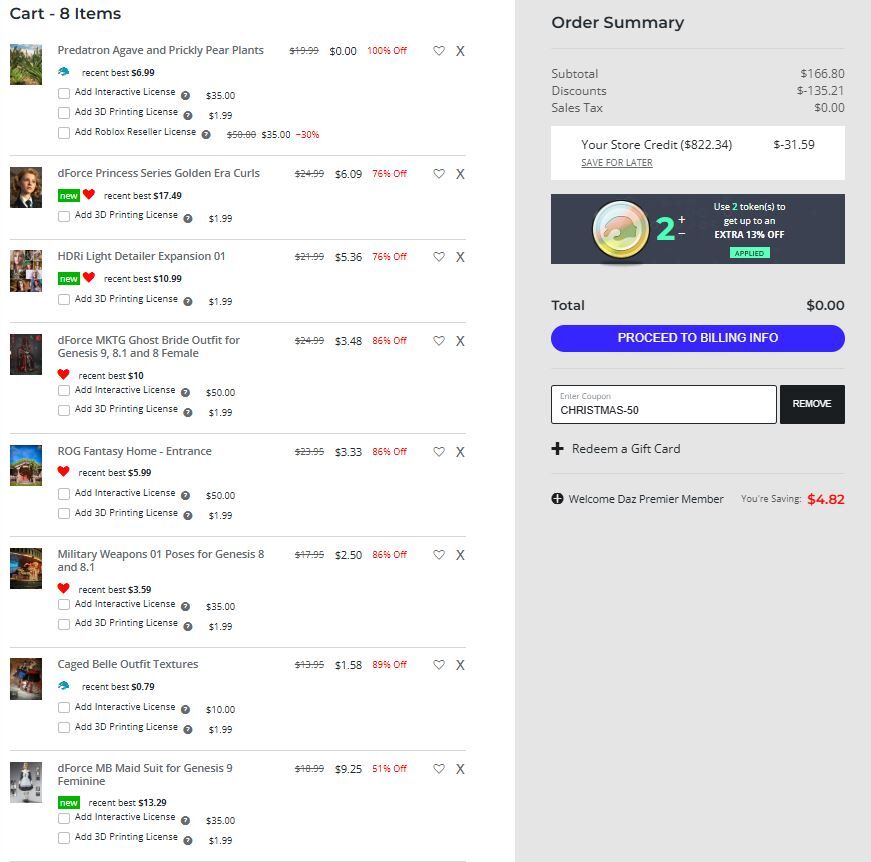 DAZで今日買ったり、もらったりしたコンテンツです。